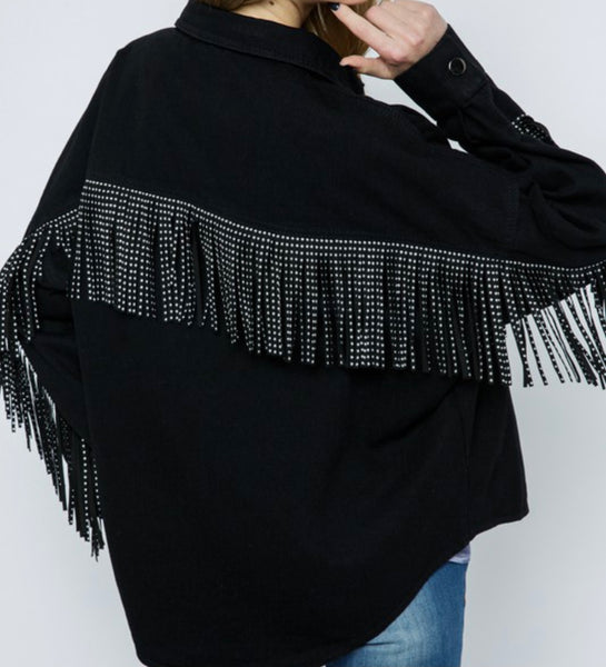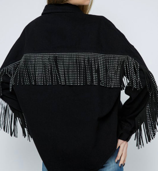 Black Stud Fringe Denim Jacket
